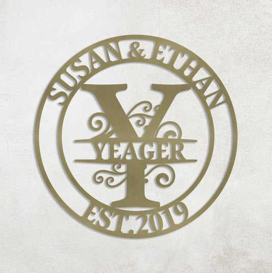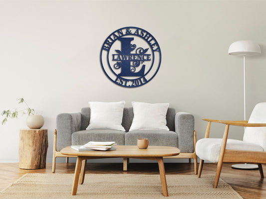 Custom Family Name Metal Sign, Gifts for Couple, Wedding Gift, Metal Wall Art, Metal Initial Door Hanger, Established Sign