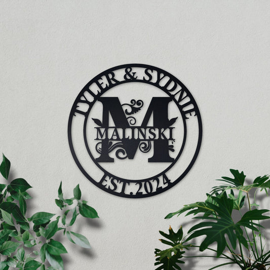 Custom Family Name Metal Sign, Couple Gift, Wedding Gift, Personalized Metal Wall Art, Metal Initial Door Hanger, Established Leafy Sign