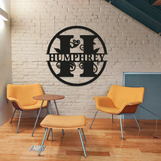 Custom Name Metal Sign, Gifts for Him Her, Metal Wall Art, Stylish Metal Initial Door Hanger, Leafy Sign, Metal Initial Door Hanger